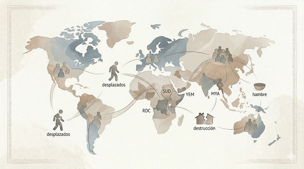 Según informes de organismos internacionales, estos conflictos comparten patrones claros: presencia de actores armados locales e internacionales, control de rutas estratégicas o recursos minerales, y una población civil atrapada entre el fuego cruzado y la falta de presión política exterior para detener el ciclo. La ausencia de movilización mediática masiva y de sanciones contundentes mantiene ese círculo en movimiento, porque no hay suficiente costo político para quienes alimentan o toleran la guerra.